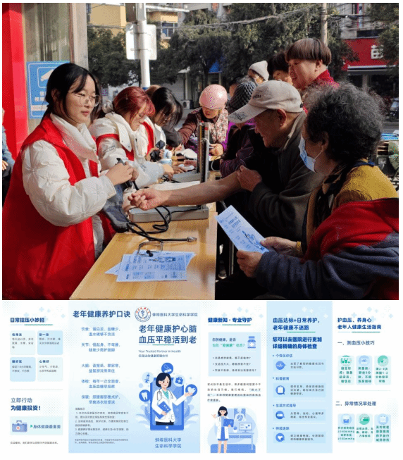 23日,志愿服务队走进蚌埠市地委社区服务中心,开展了敬老血压测量活动。活动现场,志愿者们分工明确,有条不紊地为老人们测量血压、记录数据。对于发现的异常情况,志愿者们及时提醒老人就医,并发放了健康宣传手册,普及老年健康养护知识,以专业所长传递温暖。