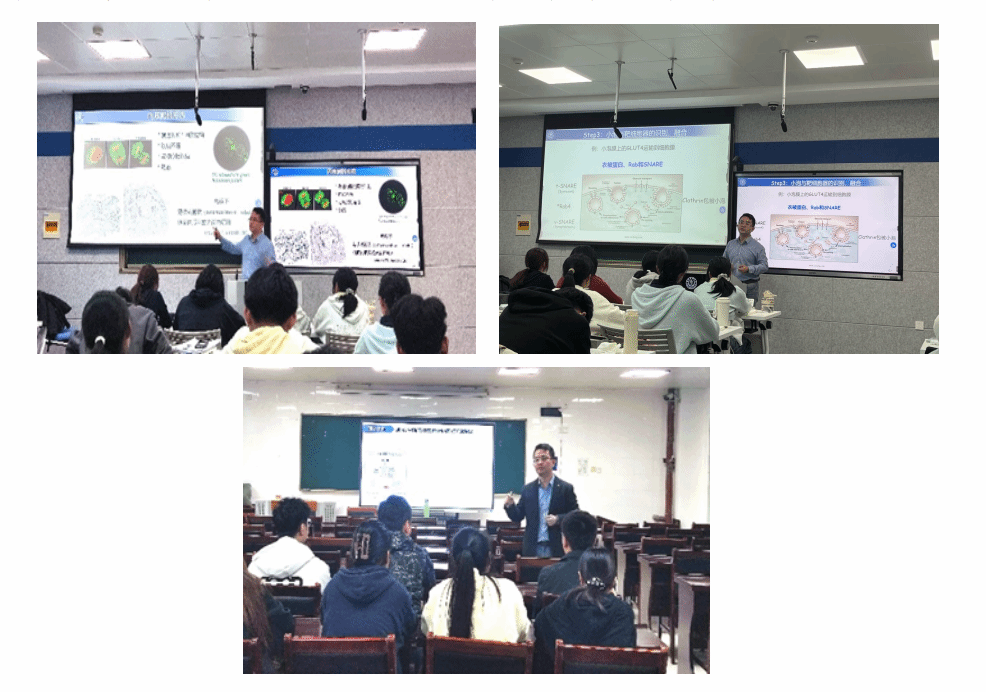 贾浩教授为“交医班”学生作了题为“细胞的内膜系统:蛋白质合成、加工以及分泌相关细胞结构”的专题授课。贾教授凭借深厚的学术积淀与丰富的科研经验,从医学视角系统梳理并深入阐释了真核细胞中复杂而精密的“内膜系统”。课程围绕蛋白质的“合成、加工、分选与分泌”这一主线,层层递进,生动解析了相关细胞器的结构与功能。作为《医学细胞生物学》课程的重要组成部分,本次教学旨在深化本科生对细胞核心生命过程的理解,夯实专业基础,激发科研兴趣。